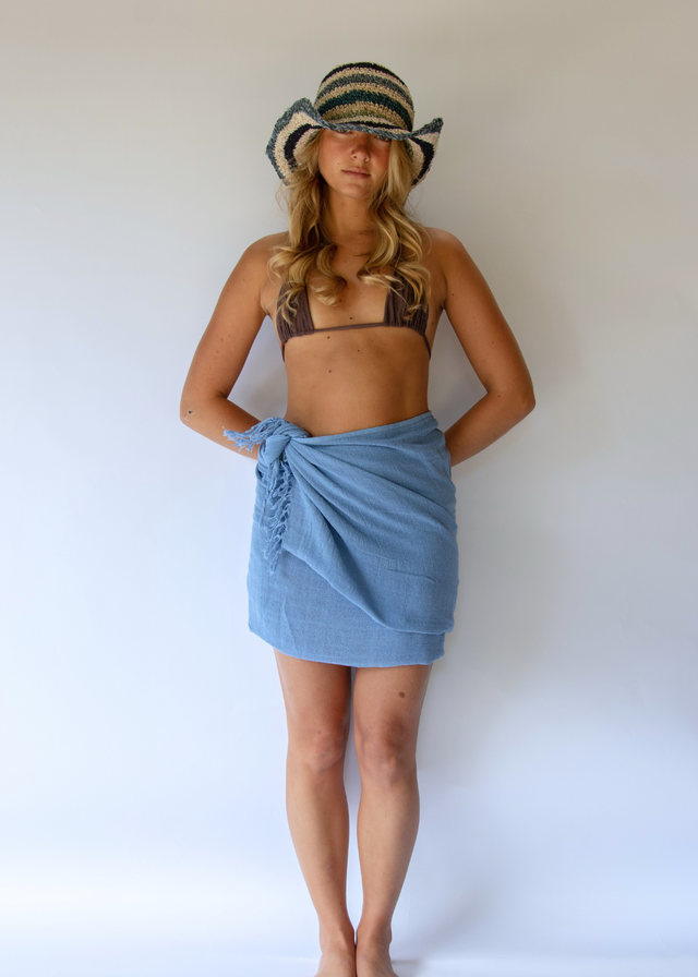 The Solstice Pareo is handwoven in Indonesia from lightweight cotton, offering a soft, breathable layer for warm days. Its sheer weave and fringed edges add a relaxed feel - perfect to tie around the waist or drape over the shoulders from beach to sunset.
